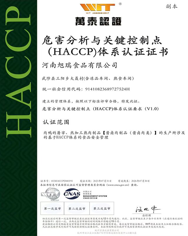 公司累計(jì)投資1.5億元,建成現(xiàn)代化屠宰加工生產(chǎn)基地,引進(jìn)先進(jìn)成套生產(chǎn)線,達(dá)到國內(nèi)領(lǐng)先生產(chǎn)加工水平。具備年屠宰2000萬只肉鴨生產(chǎn)能力。擁有儲存量3000噸的智能化,數(shù)字化冷鏈倉儲.產(chǎn)品分別通過ISO9001質(zhì)量管理體系、ISO22000食品安全管理體系和HACCP管理體系認(rèn)證,獲得綠色食品認(rèn)證和出口食品生產(chǎn)企業(yè)備案證明。